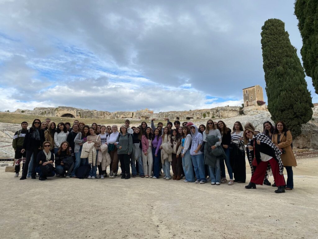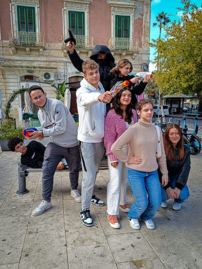 On the second day of mobility in the Erasmus+ project “A Different View of the World,” we visited Syracuse – exploring Neapolis, the Greek Theatre, Dionysius’ Ear, and Ortigia. Throughout the day, students had various photography tasks, and they enjoyed the most reenacting scenes from movie posters and famous paintings.